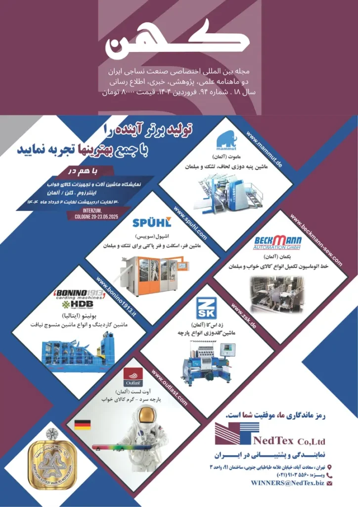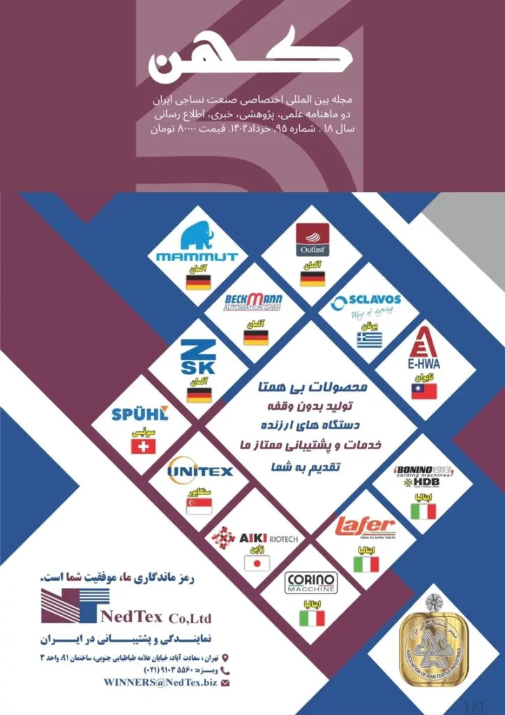 دریافت مجله نساجی کهن به صورت الکترونیک کاملا رایگان است. برای حمایت مالی از ما و یا دریافت اشتراک چاپی و نسخه فیزیکی اینجا کلیک کنید.